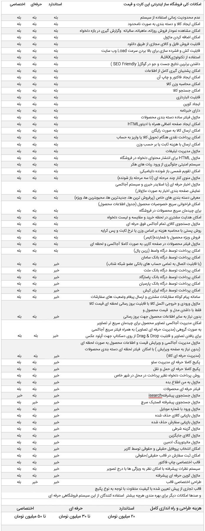 ما ترجیح داده ایم با نگاه تخصصی و جامع به ساختار سایت های فروشگاهی، فقط از CMS اپن کارت استفاده کنیم و به شناخت زوایای مختلف برنامه نویسی آن متمرکز باشیم تا بتوانیم وبسایتی حرفه ای، کامل و بدون مشکل راه اندازی کنیم.